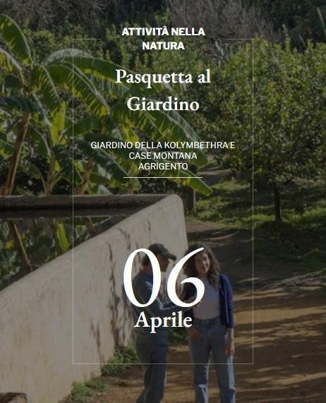In occasione della Pasquetta, potrai partecipare alle speciali visite didattiche nell'antico agrumeto in piena fioritura e alle Case Montana. Potrai anche partecipare alle escursioni nell'Ipogeo Kolymbethra-Porta V, condotte da esperti speleologi e far partecipare i tuoi bimbi al laboratorio di pittura delle uova con prodotti naturali. Da mezzogiorno in poi, potrai infine prenotare un cestino picnic oppure portare il pranzo a sacco da consumare nell'area attrezzata all'ombra di un alloro secolare.